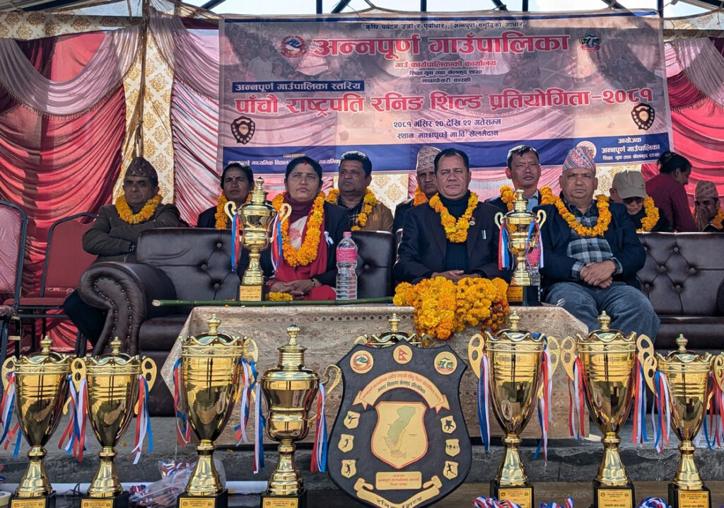 अन्नपूर्ण गाउँपालिका शिक्षा शाखाको आयोजनामा बिहीबारदेखि ५ औं राष्ट्रपति रनिङ शिल्ड प्रतियोगिता सुरु भएको छ ।