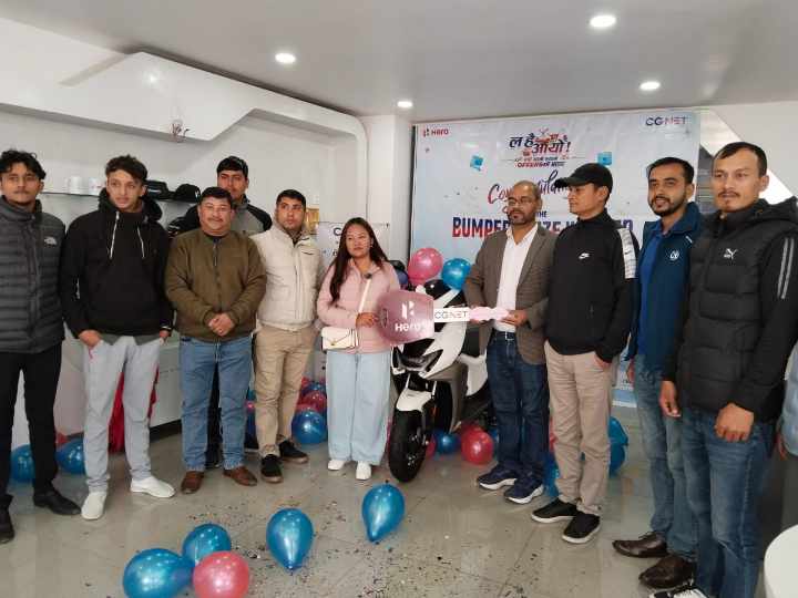 शुक्रबार पोखराको अर्चलबोटमा रहेको सिजी प्लाजामा एक कार्यक्रमको आयोजना गरि स्कुटर विजेता गुरुङलाई सिजीका सेल्स एण्ड मार्केटिङ नेशनल हेड आकेश जैसवालले स्कुटरको चाबी हस्तान्तरण गरेका हुन् ।