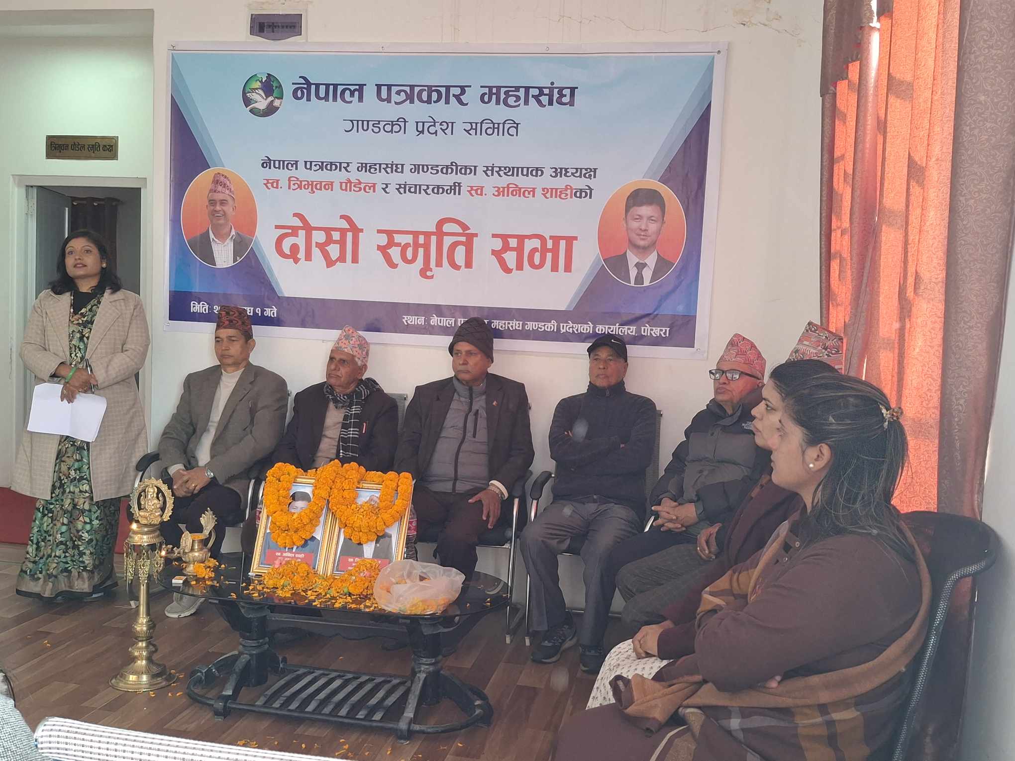 नेपाल पत्रकार महासंघ गण्डकी प्रदेश समितिले संस्थापक अध्यक्ष त्रिभुवन पौडेलको स्मरणमा दोस्रो स्मृति सभा गरेको छ ।