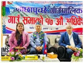 यस्तै सफल व्यवसायी स्याङ्जा स्वर्णीम ज्वेलर्सका रमेश वि।क र महिला उद्यमीतर्फ प्रभु सुन पसलका रिता दुधराजलाई सम्मान गरिएको थियो ।