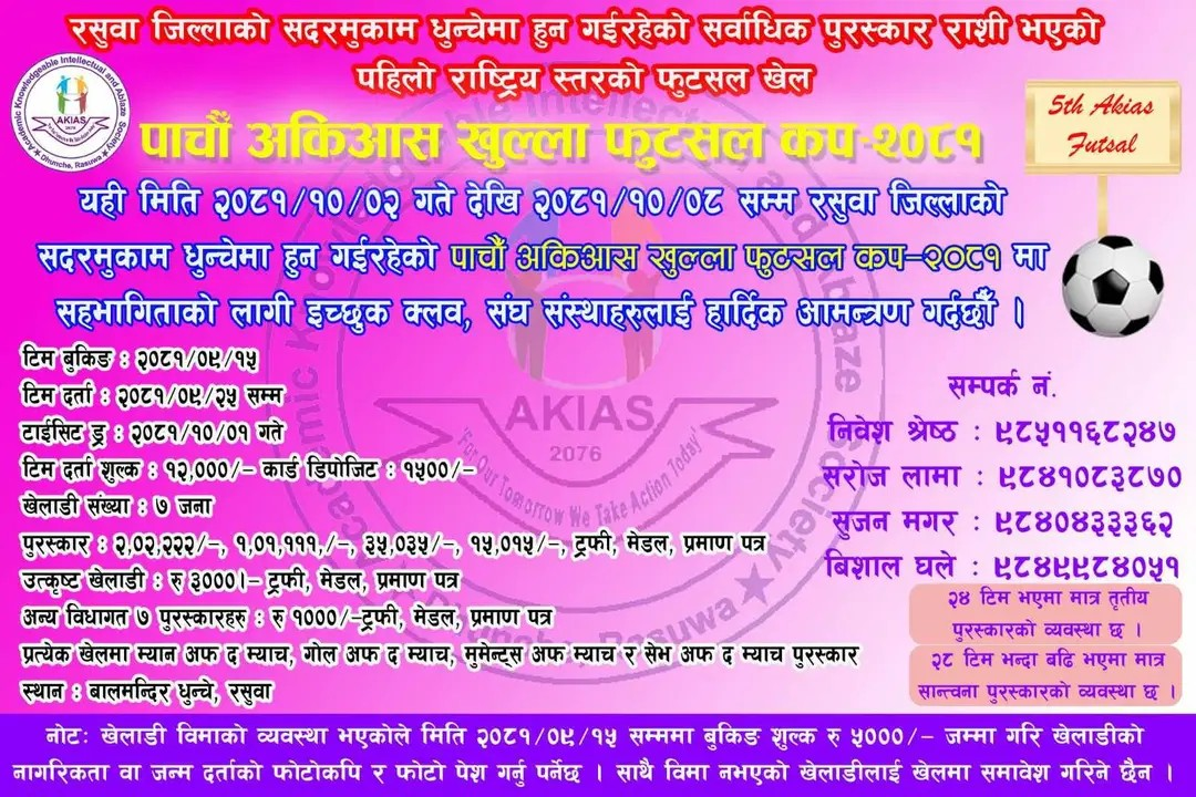 माछापुच्छ्रे–९,सिधिङमा साविक वडा स्तरीय खुल्ला पुरुष भलिबल प्रतियोगिता हुने